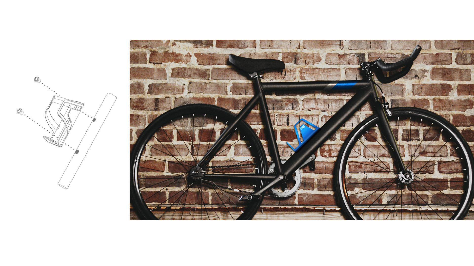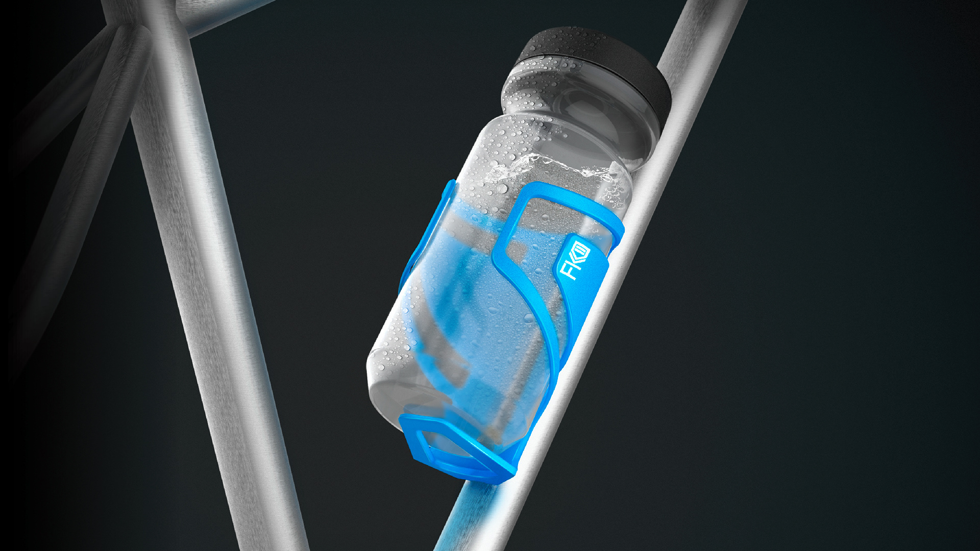 FKII is a bicycle bottle holder which fits a standard bicycle bottle, holding it in place securely via an inner fixtures, while still making it easily accessible through the flexible outer frames. The bottle holder consists of a moderate lightweight construction and abstains from complex system architecture as well as adjustment mechanisms. The unit can simply be produced via injection molding.