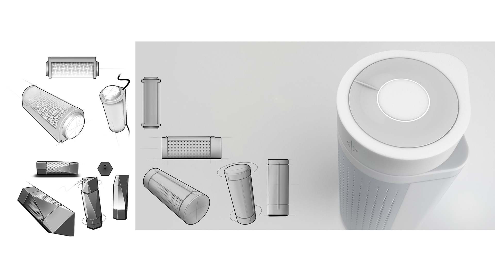 The project started out with the analysis of the current market situation of Bluetooth speakers. In addition, a usage analysis was carried out, identifying typical usage scenarios. This involved the analysis of flow processes in use and operation. Target groups were defined and researched in order to build the design process on their needs.